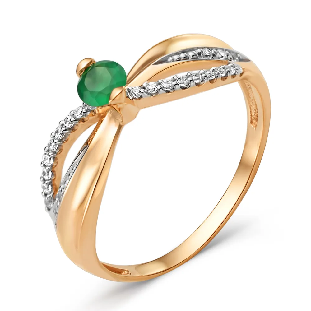 Кольцо из красного золота с зеленым агатом 002091-1482