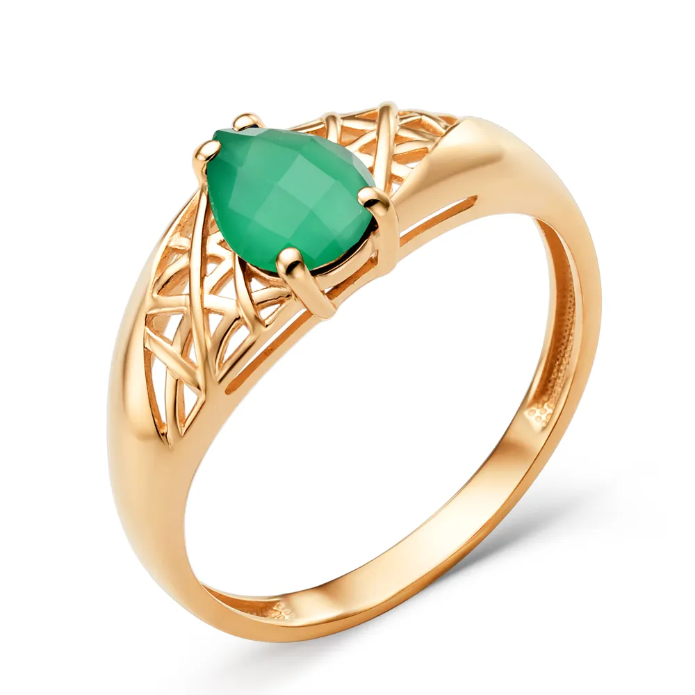 Кольцо из красного золота с зеленым агатом 002161-1480
