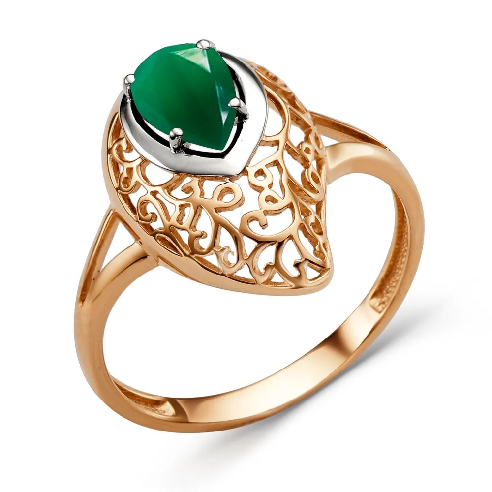 Кольцо из красного золота с зеленым агатом