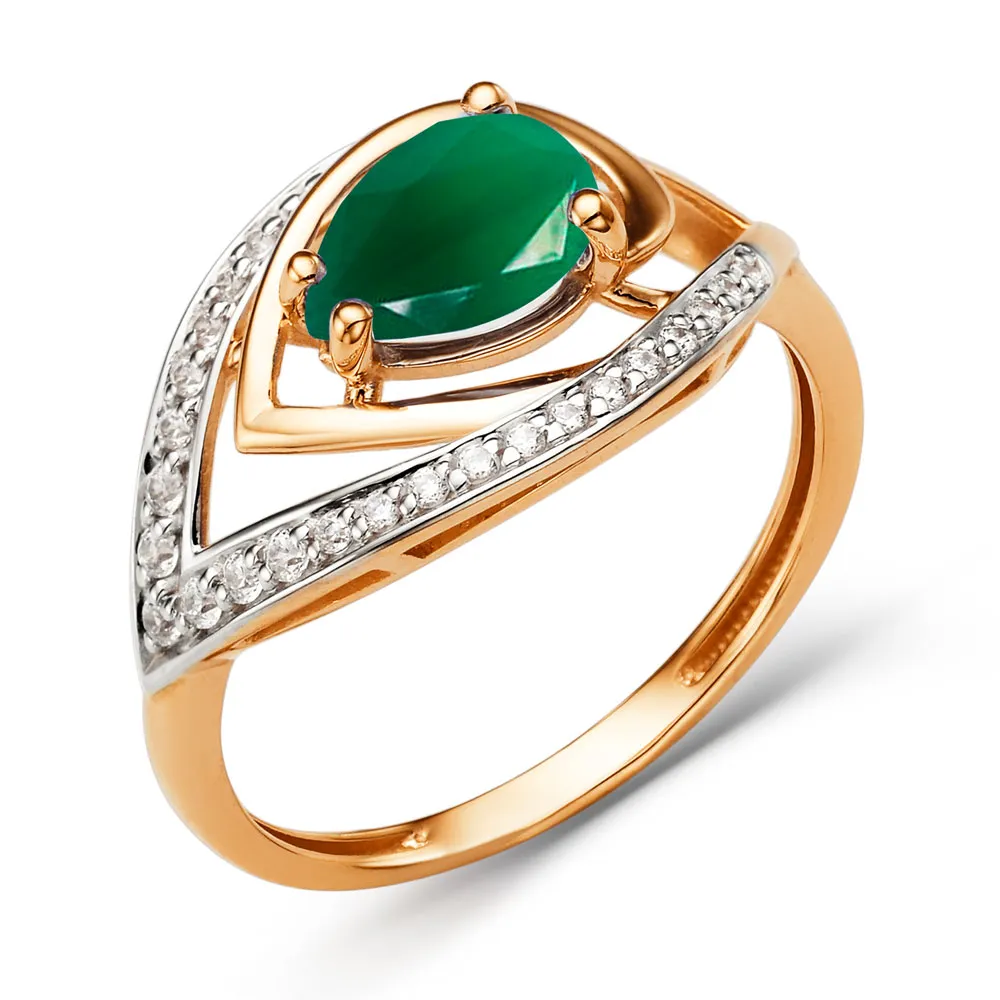 622346:337 Кольцо из красного золота с зеленым агатом Коллекция - Основная 0