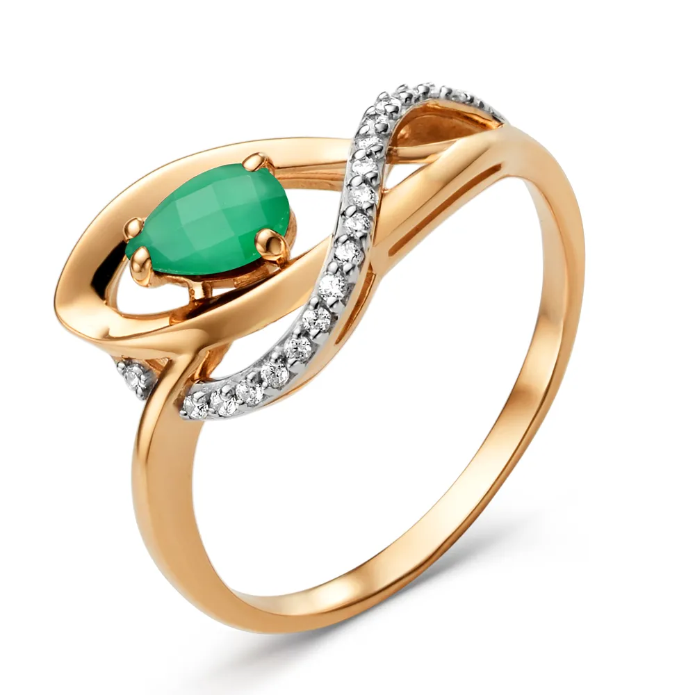 622746:337 Кольцо из красного золота с зеленым агатом Коллекция - Основная 0