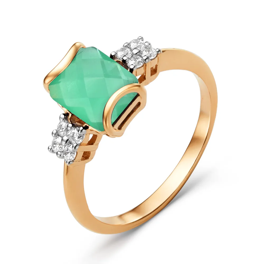 Кольцо из красного золота с зеленым агатом