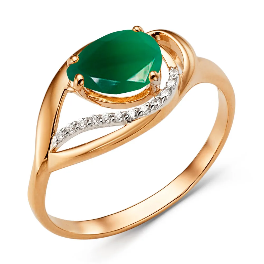625012:337 Кольцо из красного золота с зеленым агатом Коллекция - Основная 0