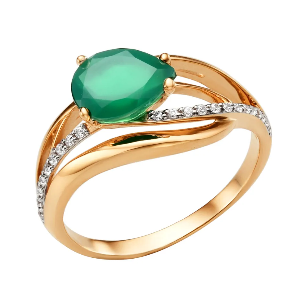 625624:337 Кольцо из красного золота с зеленым агатом Коллекция - Основная 0