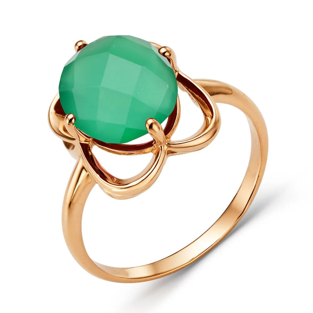 628650:337 Кольцо из красного золота с зеленым агатом Коллекция - Основная 0