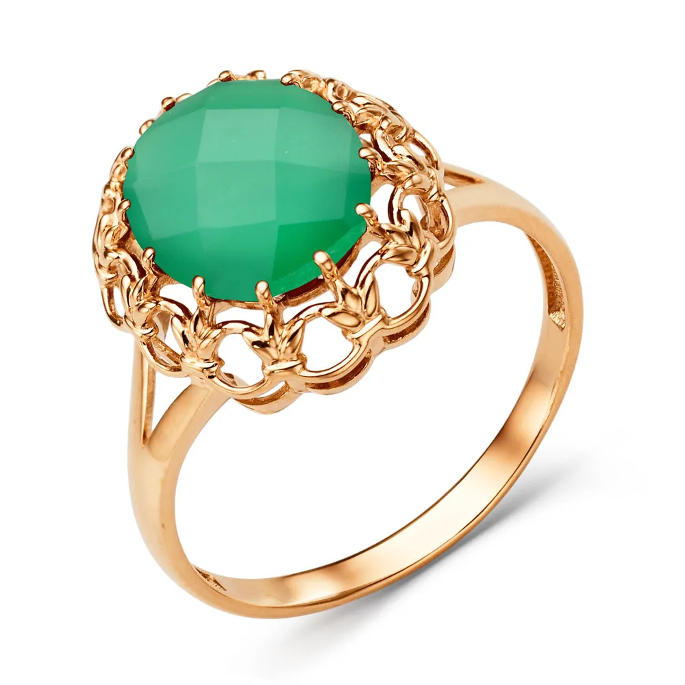 Кольцо из красного золота с зеленым агатом