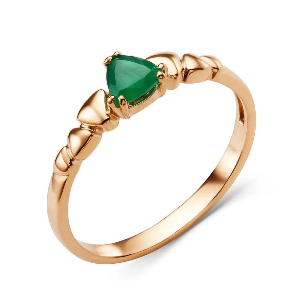 629406:337 Кольцо из красного золота с зеленым агатом Коллекция - Основная 0