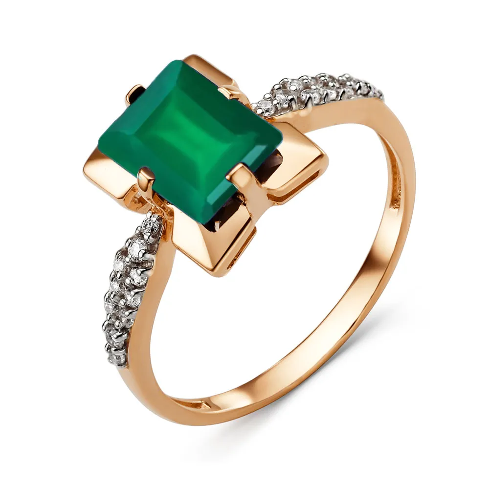 631674:337 Кольцо из красного золота с зеленым агатом Коллекция - Основная 0