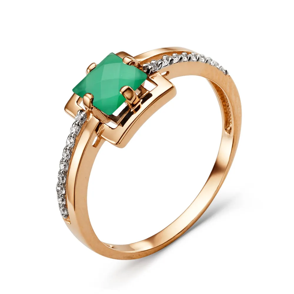 631852:337 Кольцо из красного золота с зеленым агатом Коллекция - Основная 0