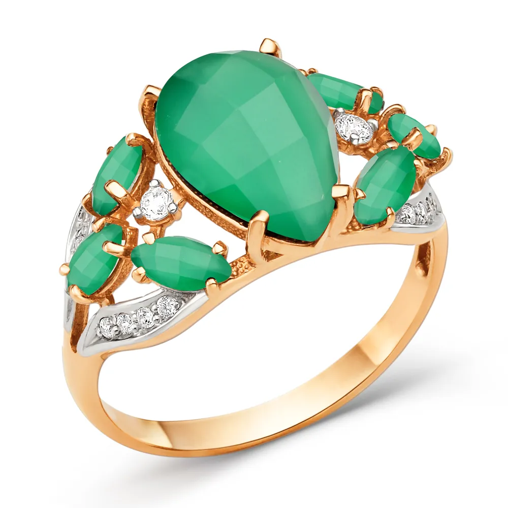 Кольцо из красного золота с зелеными агатами