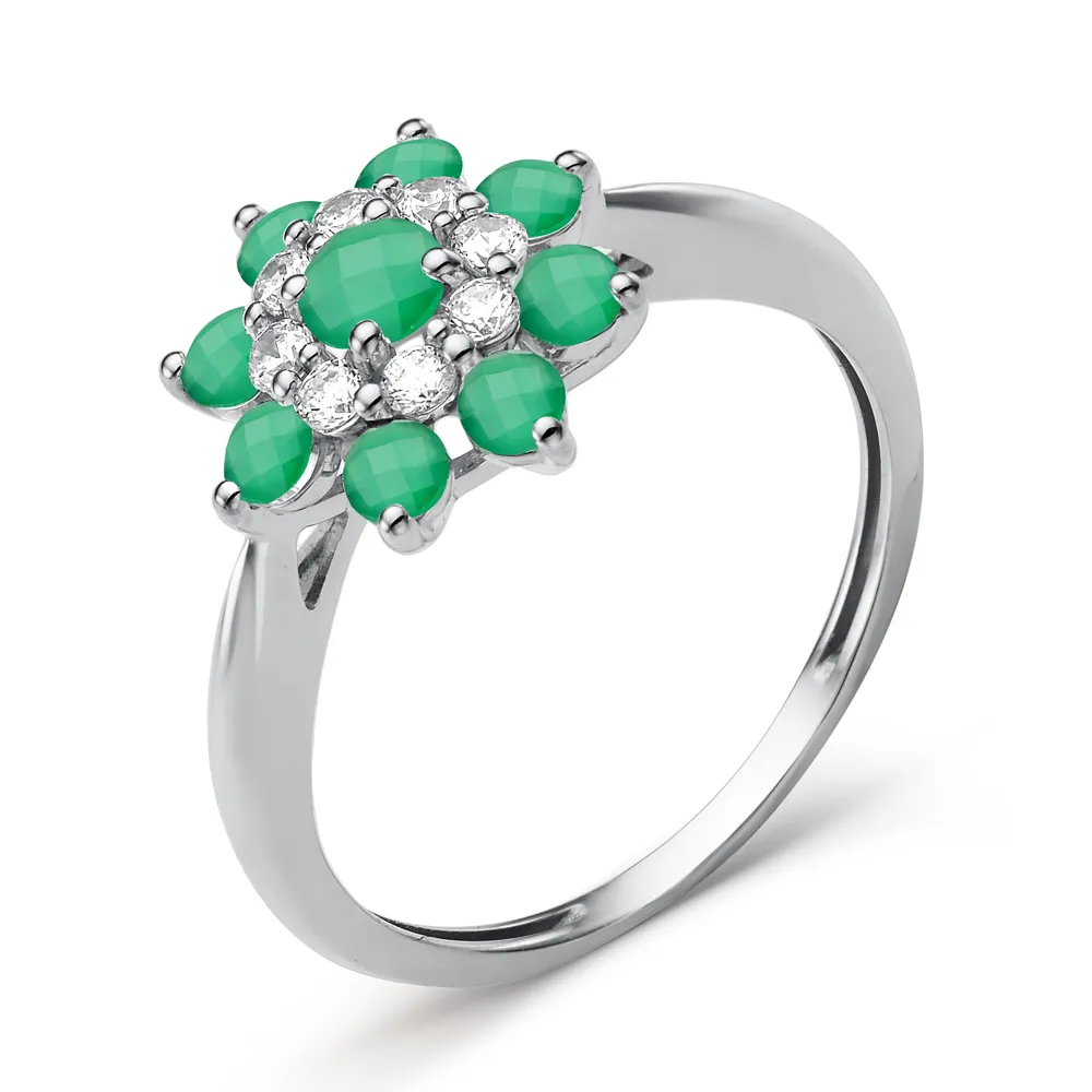 619694:337 Кольцо из белого золота с зелеными агатами Коллекция - Основная 0