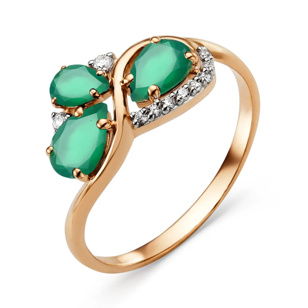 631008:337 Кольцо из красного золота с зелеными агатами Коллекция - Основная 0