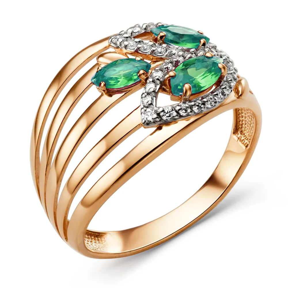 644141:337 Кольцо из красного золота с зелеными агатами Коллекция - Основная 0