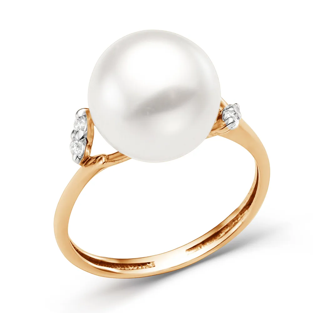 Кольцо из красного золота с жемчугом и фианитами