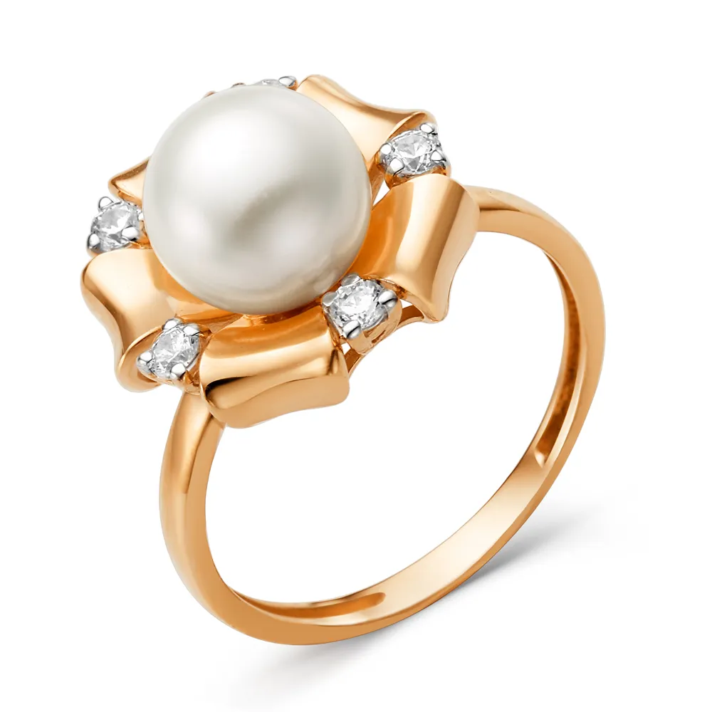 619814:337 Кольцо из красного золота с жемчугом и фианитами Коллекция - Основная 0