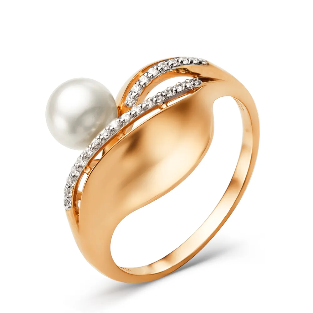 624548:337 Кольцо из красного золота с жемчугом и фианитами Коллекция - Основная 0