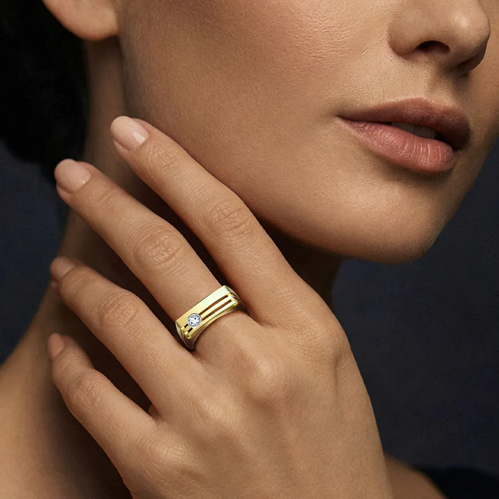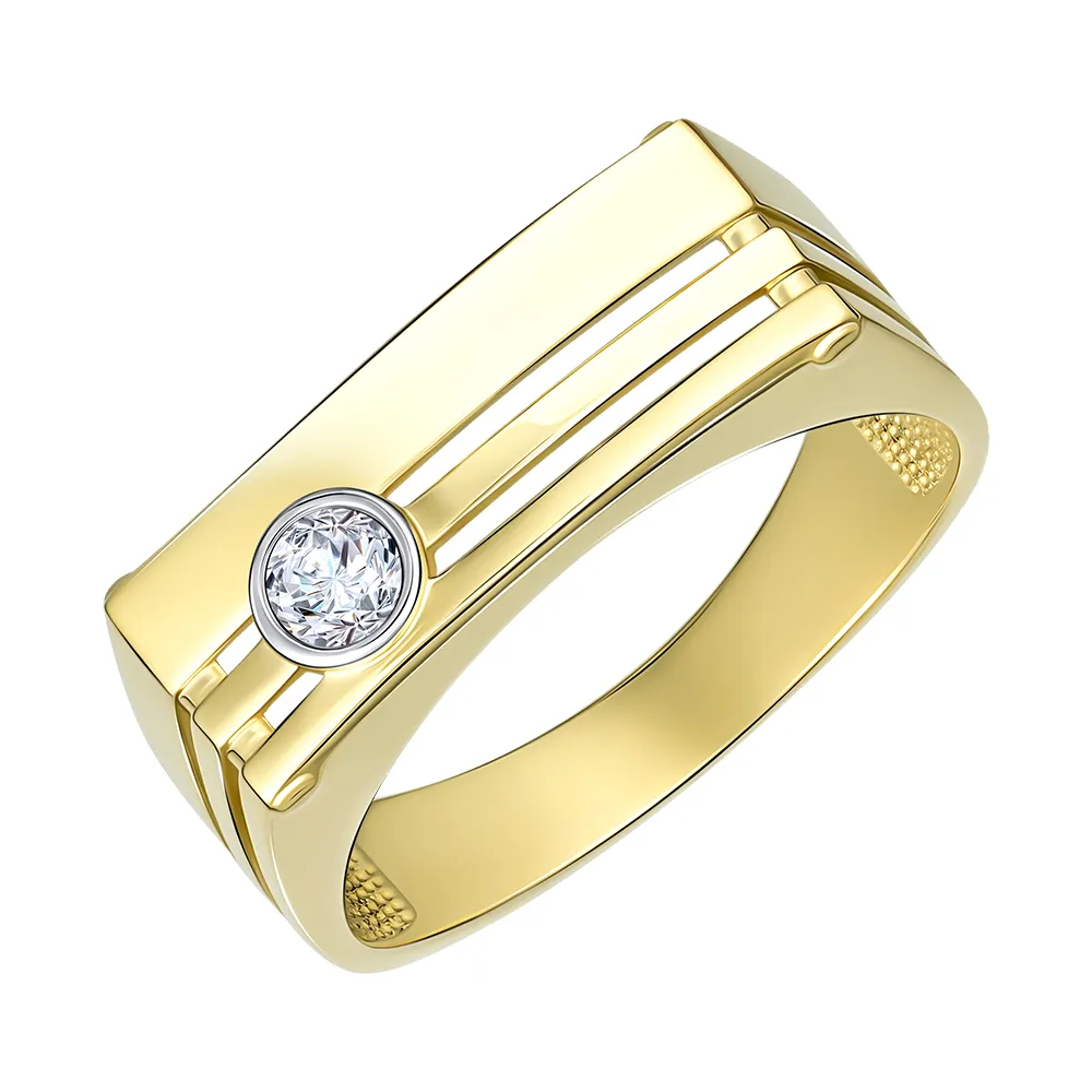 911949:337 Кольцо печатка из желтого золота с бриллиантом Коллекция - Основная 0