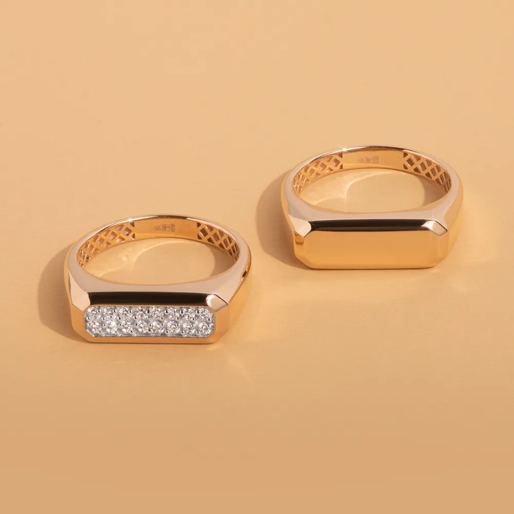 Кольцо печатка из красного золота с фианитами