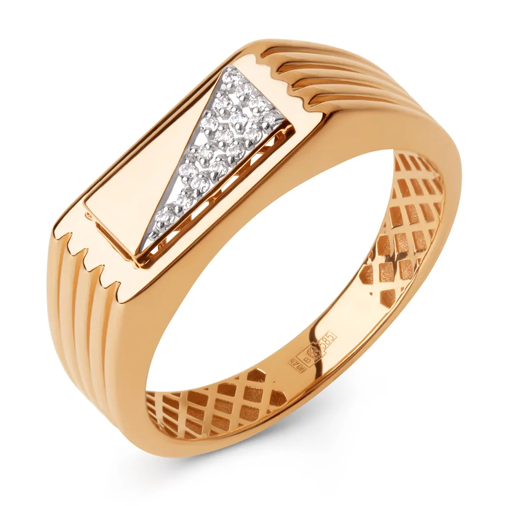 Кольцо печатка из красного золота с фианитами 902901-1102