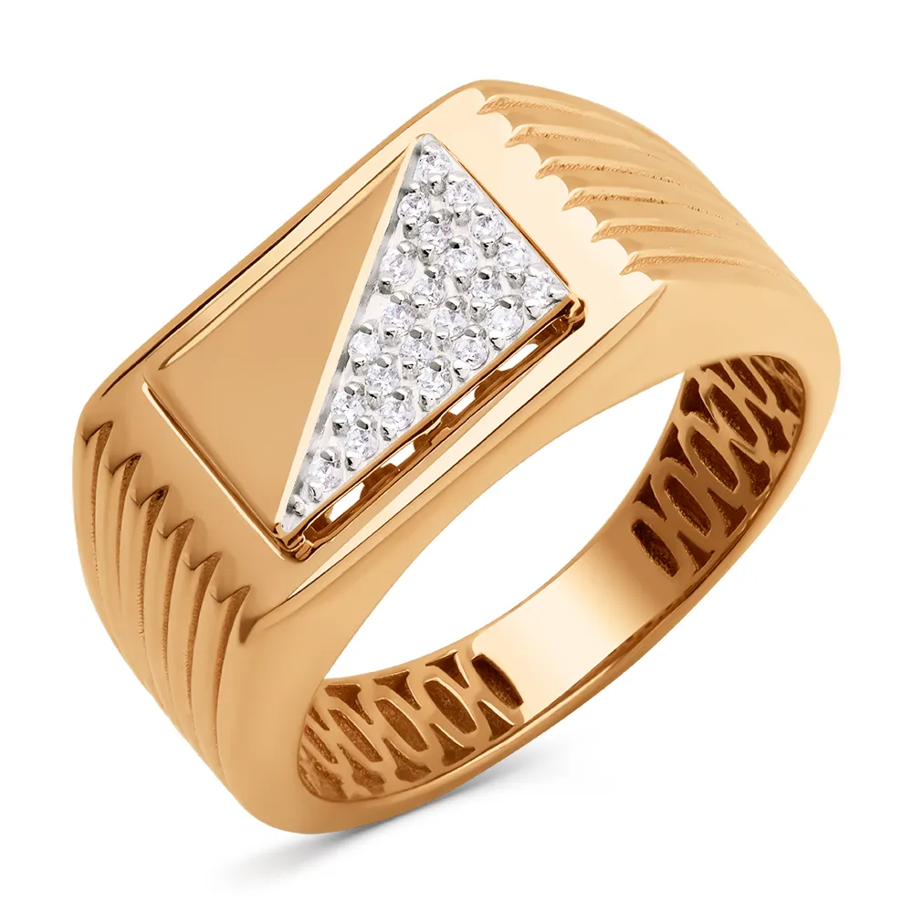 Кольцо печатка из красного золота с фианитами 902901-1102