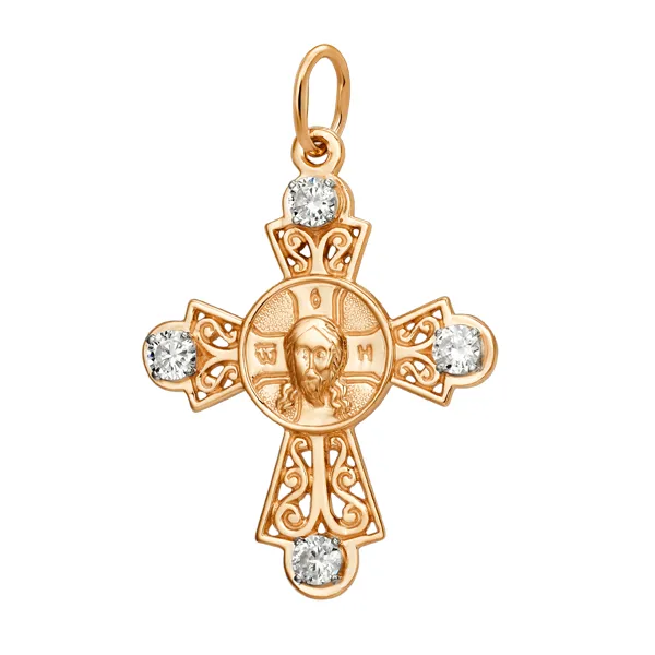 718328:337 Крест из красного золота с фианитами Коллекция - Православная 0