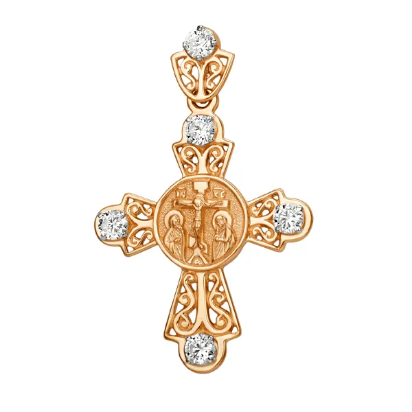718330:337 Крест из красного золота с фианитами Коллекция - Православная 0