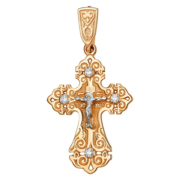 718340:337 Крест из красного золота с фианитами Коллекция - Православная 0