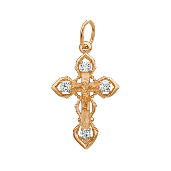 718358:337 Крест из красного золота с фианитами Коллекция - Православная 0