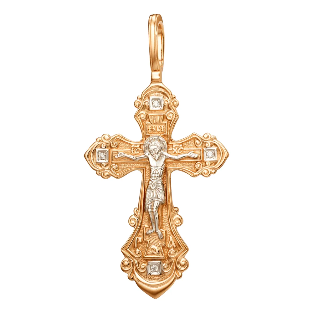 Крест из красного золота с фианитами