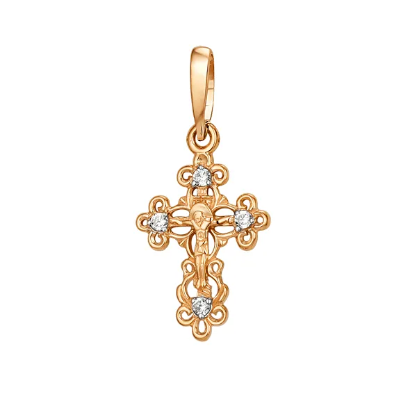 Крест из красного золота с фианитами