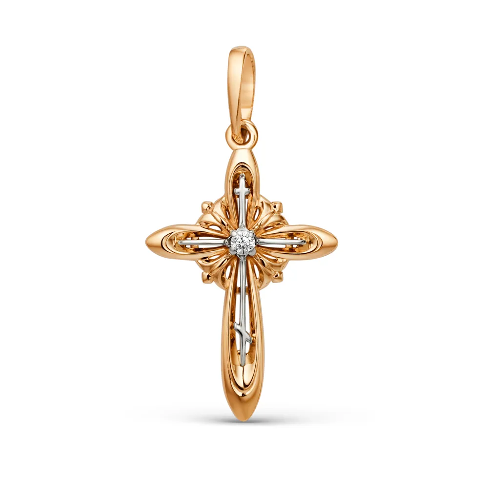 Крест из красного золота с фианитом