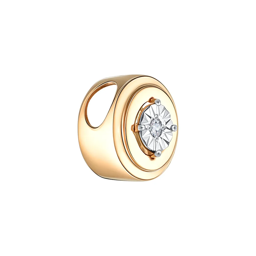 Кольцо печатка из красного золота с фианитами 902901-1102