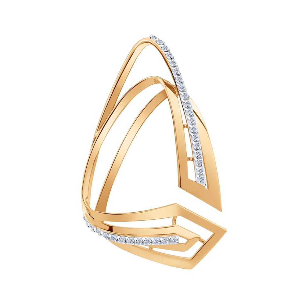 Кольцо печатка из красного золота с фианитами 902901-1102