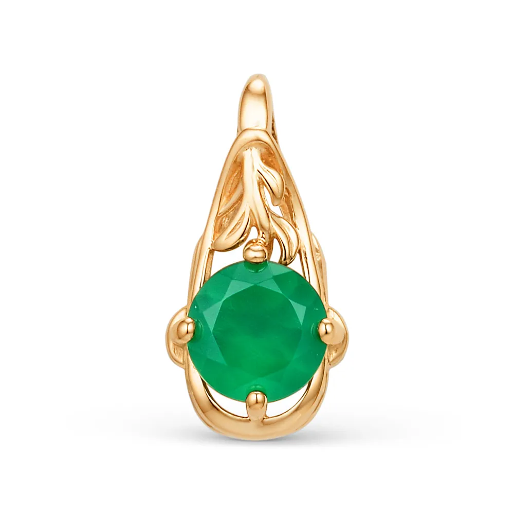 Подвеска из красного золота с зеленым агатом