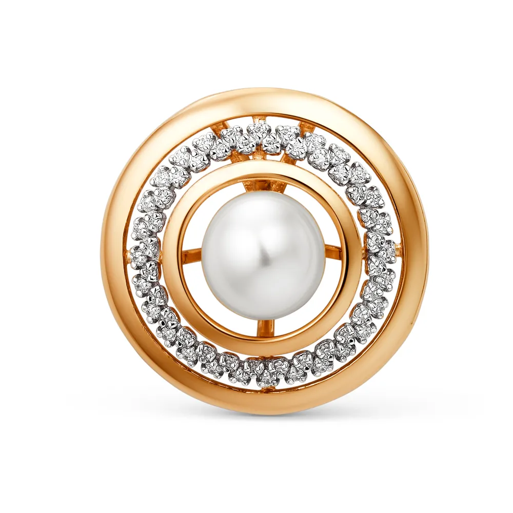 644509:337 Подвеска из красного золота с жемчугом и фианитами Коллекция - Основная 0