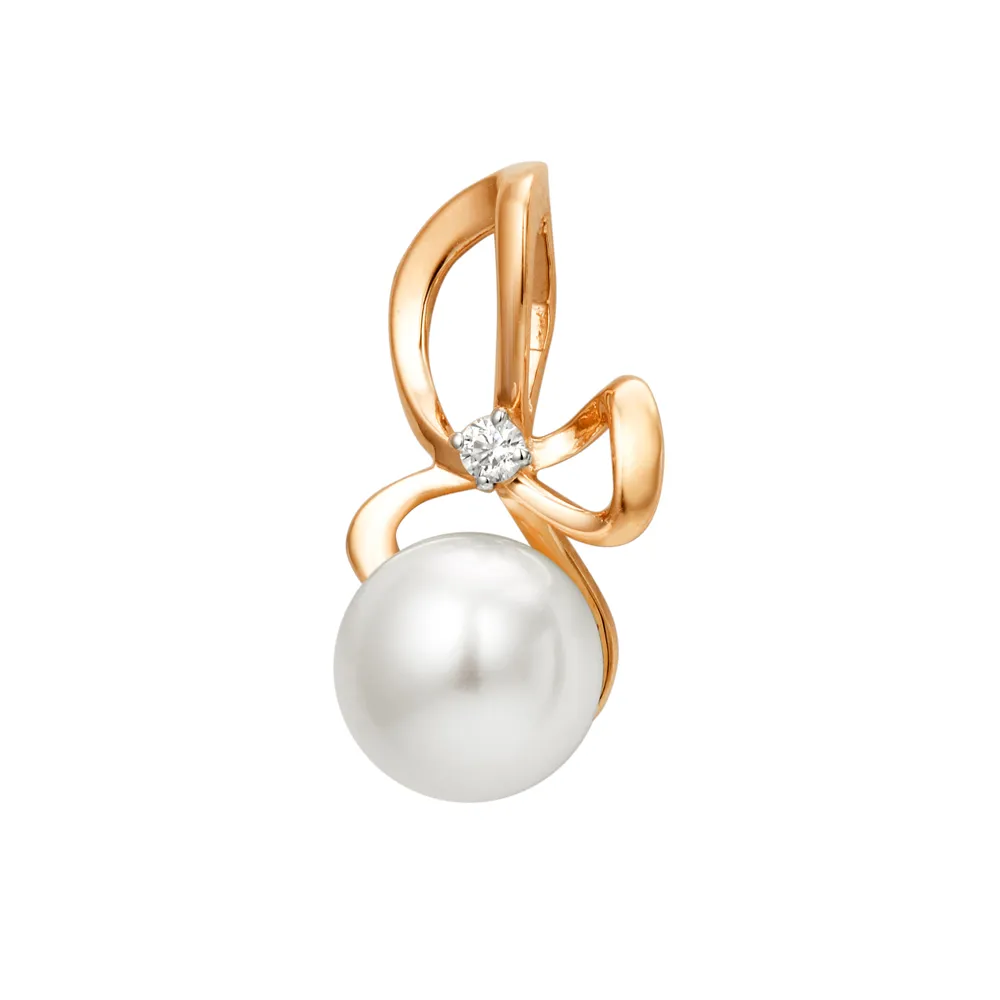627714:337 Подвеска из красного золота с жемчугом и фианитом Коллекция - Основная 0