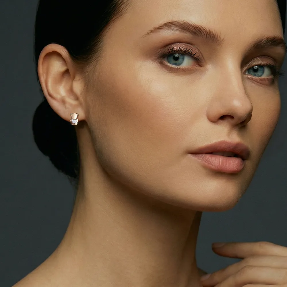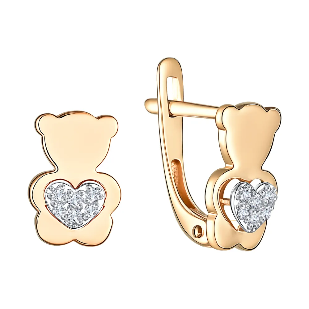 Серьги детские из красного золота с бриллиантами