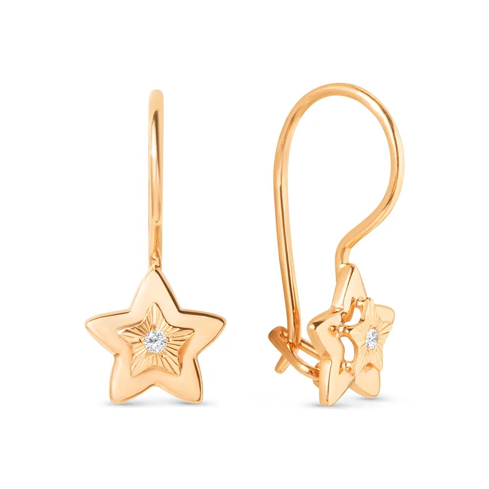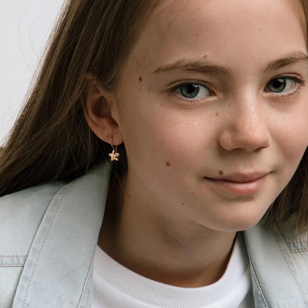 Серьги детские из красного золота с фианитами