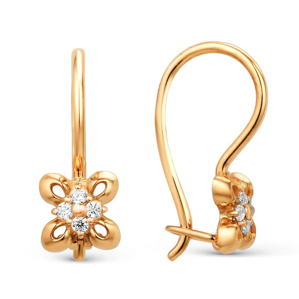 Серьги из красного золота с фианитами