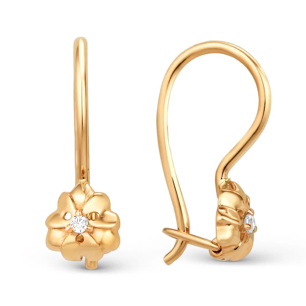 619148:337 Серьги детские из красного золота с фианитами Коллекция - Основная 0
