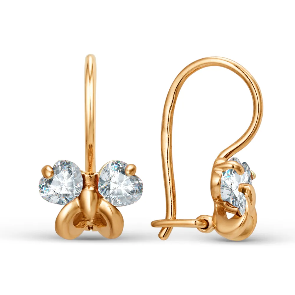 Серьги детские из красного золота с фианитами