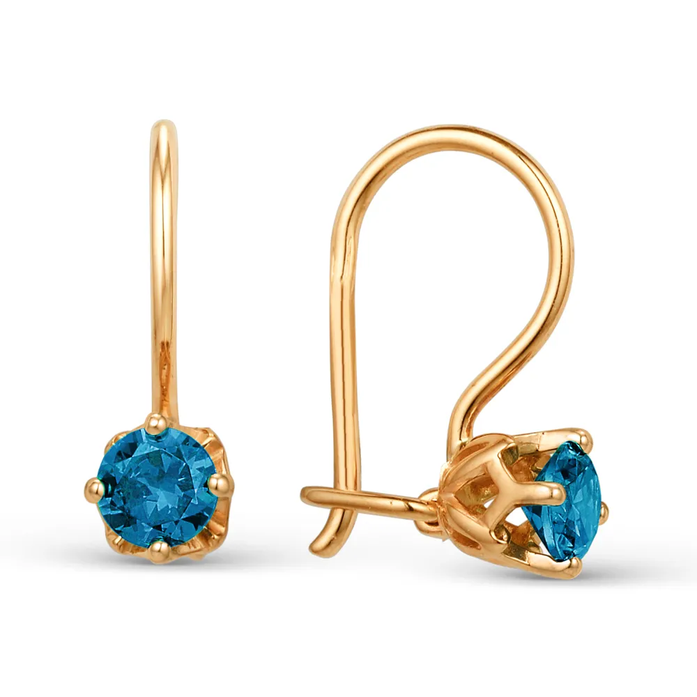 Серьги детские из красного золота с лондон топазами