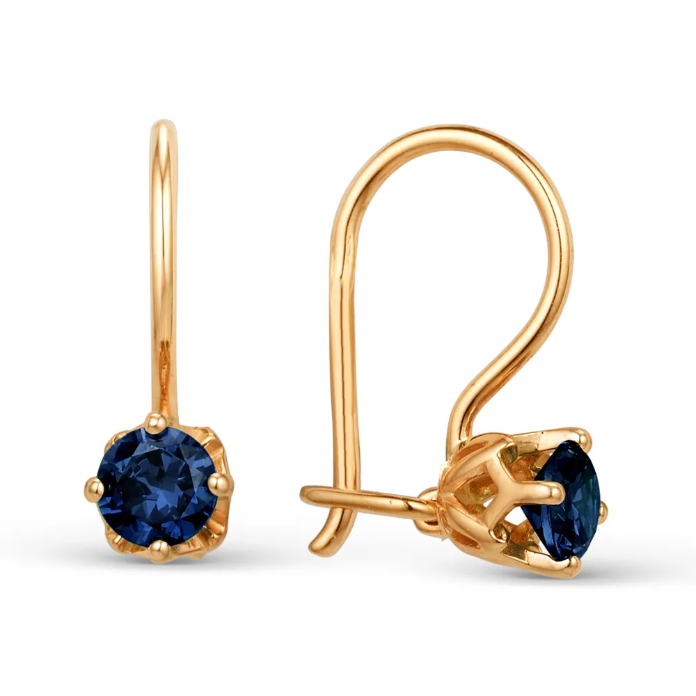 Серьги детские из красного золота с сапфирами