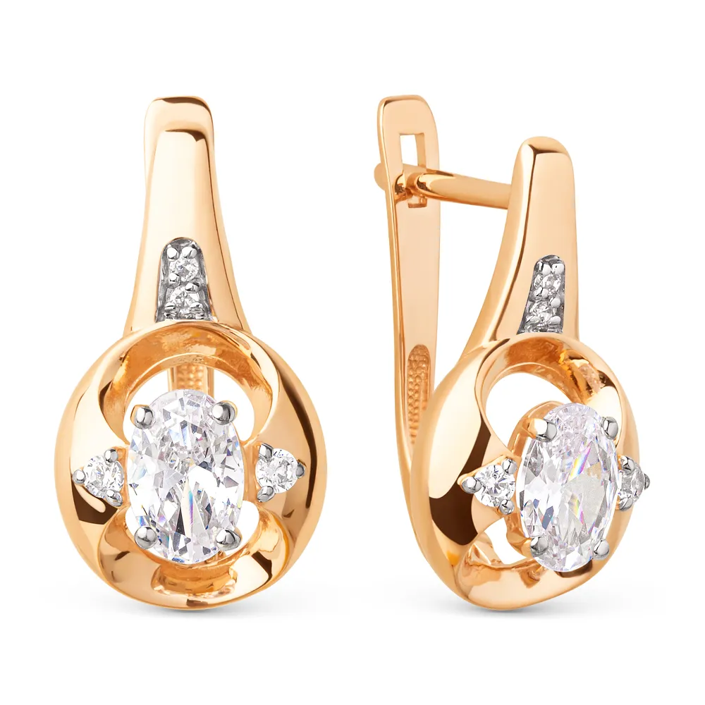 Серьги из красного золота с фианитами