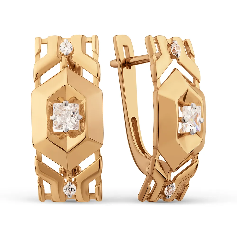 Серьги из красного золота с фианитами