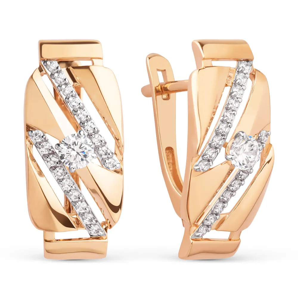 Серьги из красного золота с фианитами
