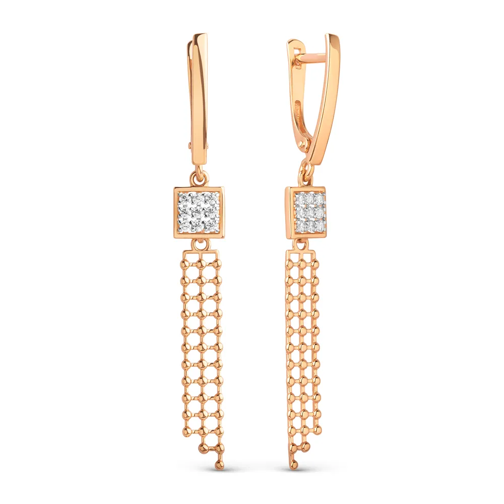 Серьги из красного золота с фианитами