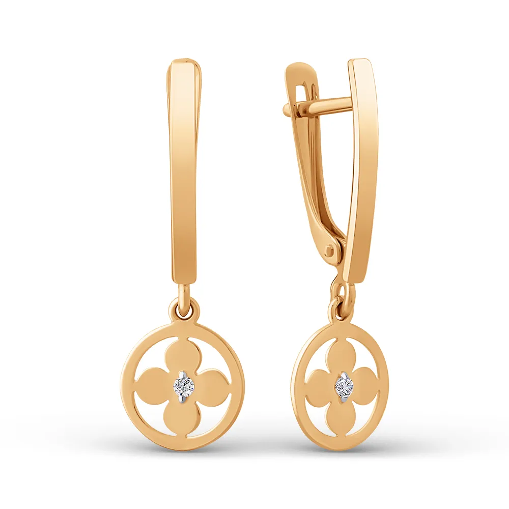 Серьги из красного золота с фианитами