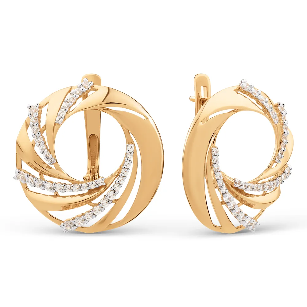 Серьги из красного золота с фианитами