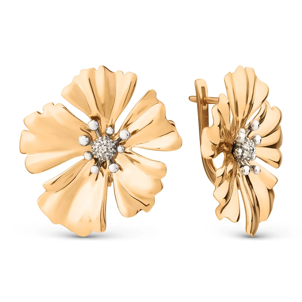 Серьги из красного золота с фианитами